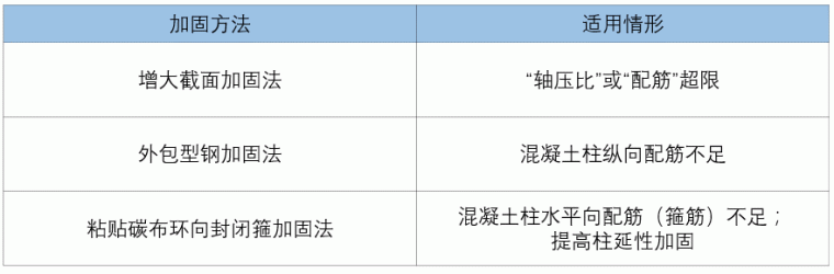 4)框架柱軸壓比不符合鑒定要求時,可采用增大截面法進行加固。